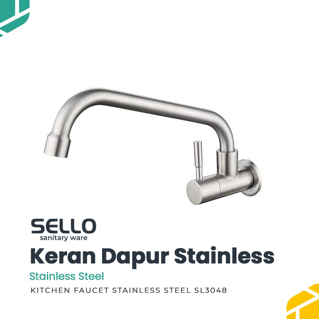 SELLO Keran Air Stainless SUS 304 Model Angsa / Kran Bebek SL3048Brand: Sello SanitarySKU: SL3048Model: Keran Air Model Angsa Stainless SUS 304Panjang : 30 CmUkuran Drat Keran: 1/2 InchWarna: Silver Stainless DoffBahan Material: - Stainless Steel SUS 304- Jantung Keran : Brass Material (Kuningan Tebal)Spesifikasi Produk:- Menggunakan bahan dasar Stainless Steel grade 304 yang merupakan standard international.- Ada saringan air kecil diujung kran, bisa di buka untuk di bersihkan.- Pipa bisa diputar kiri kanan.- Anti Karat, Anti Korosi dan Tidak Mudah Kotor- Finishing stainless bergaris tampil kokoh dan memberikan kesan informal pada kamar mandi.Cocok digunakan untuk kitchen sink dan bak cuci piring mempunyai spout jaraknya lebar dan bisa dipakai untuk bak cuci piring yang dua lubang.Barang di jamin berkualitas!Silahkan di order :))dan jangan lupa di follow ya!untuk grosir bisa langsung menghubungi kami melalu