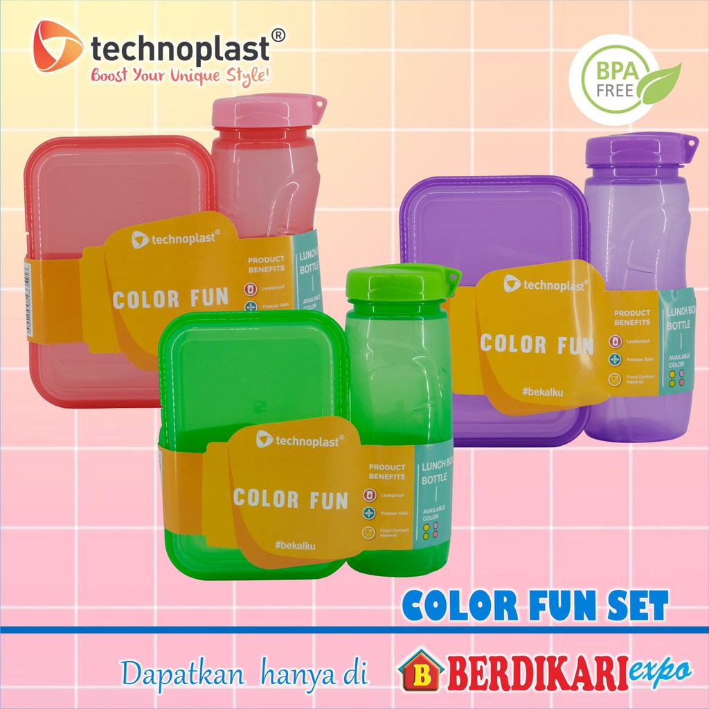 Kini Technoplast menghadirkan produk generik baru yang sangat ramah untuk si kecil. Dibalur dengan warna-warna pastel yang bisa menambah gairah si kecil dalam melakukan aktivitas kesehariannya. Selain itu, Colorfun Set ini sangat praktis. Kamu bisa mendapatkan botol minum dan tempat makan sekaligus dalam sekali beli. Sangat menguntungkan bukan? Jika ada yang paketan, kenapa harus beli satuan? Segera dapatkan, sebelum kehabisanKODE PRODUK : PA715SW407.TSCF/45SCPRODUCT DIMENSION : 194 x 73 x 200 mmMAJORITY PRODUCT MATERIAL : PPWEIGHT : 100.6CARE AND USAGE INSTRUCTIONS"PERAWATAN SET KOTAK MAKAN ANDA"-Box berisi : 1 botol minum,1 kotak makan-Isi sesuai takaran-Simpan di tempat teduh-Hindari suhu diatas 100C-Cuci Sebelum digunakan-Tutup wadah selama bepergian"LANGKAH MENCUCI"-Gunakan spons halus , air dan sabun untuk mencuci botol.-Biarkan tutup botol terbuka hingga kering.-Taruh botol dalam posisi terbalik sampai kering.-Hindari sikat / spons kawat dan detergent k