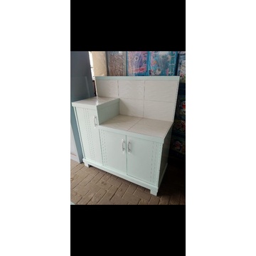 Rak kompor 3pt LSpesifikasi :- UK p 120cm x L 50cm x T ke sandaran 110cm-finishing duco-toptable n sandaran keramik-bahan blok