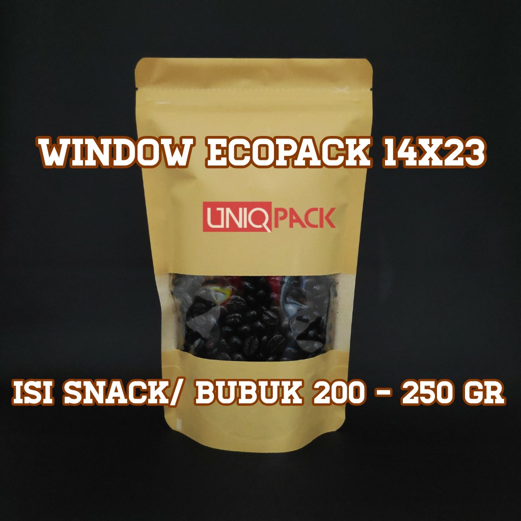 Cuci Gudang Perlengkapan di Kabupaten Sragen [i00 Pcs] Standing Pouch Window Ecopack 14x23 Kpack/ Kertas Paper/ Craft Kraft/ Kemasan Kopi dari Tidak Ada Merek Kota Surabaya