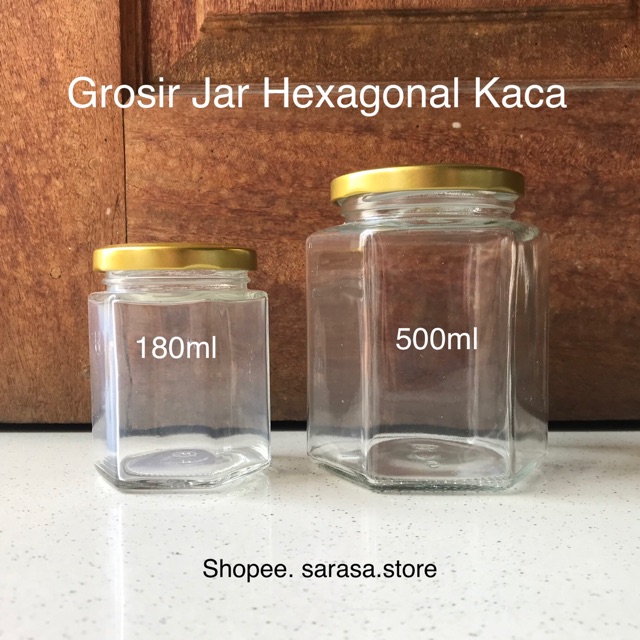 Toko Grosir Perlengkapan di Kabupaten Cilacap Murah Jar Toples Wadah Kaca 180ml 500ml Hexagonal Makanan Kue Kering Bumbu Sambal Sambel Grosir dari Sarasa.store Kota Jakarta Barat