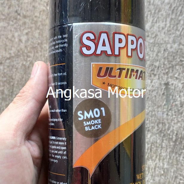 ===========================TIDAK BISA KIRIM KE LUAR JAWA===========================via darat maupun udaraKarena barang berupa cairan aerosol & mengandung gas bertekananSapporo Ultimate SM01 SMOKE BLACK (Hitam Transparan)Isi kemasan : 400mlKeunggulan1. High Performance2. Hitam Transparan3. Bisa diaplikasikan di warna cerah supaya terlihat lebih gelap4. Cocok untuk smoke lampu sein/headlampCara penggunaan1. Diperlukan ayunan tangan sedikit lebih cepat dalam penyemprotan, mengurangi hasil tidak merata2. Jarak penyemprotan terhadap media, 15-20 cm3. 2 lapis tipis tipis merata, interval 15 menit setiap lapisHarga Per 1 Pcs100% Barang Baru Sesuai Foto, Ini adalah hasil Foto SendiriNotes : Warna mungkin ada sedikit perbedaan antara Foto dengan Asli karena efek cahaya dan layar monitor