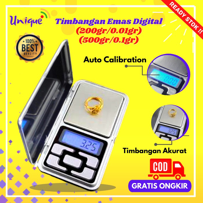 Selamat datang di Unique Housware !!Best Quality Product !!Timbangan Emas Perhiasan Mini DigitalKini akan sangat memudahkan anda dlm menimbang berbagai jenis barang atau emas dan bubuk,obat,dan lain lain.Dengan kapasitas ma> 200gram - 0,01 gram> 500gram - 0.1 gram- Color : silver- Scale size : 4.72\" x 2.36\" x 0.78\"- LCD Screen- Cover : Yes Alat penimbang emas dengan Akurasi terbaik.menimbang dengan kapasitas 200g. dan presisi 0,01g.dan 500gram - 0.1 gramketelitian dan akurasi timbang yh maximal.Pocket sacale di lengkapi dengan aplikasi tambahan seperti..menu. tare.satuan timbang dpt di plih gram..ozt..dwtmenggunakan power baterai 2x AAA.layar tampilan display lebih jelas dan dpt di gunakan di tempat gelap skalipun.high density ABS Housing.. Model simple dan dpt di simpan dengan mudah..baterai sebagai power lbh mudah di cari..pelindung mika transparan berfungsi menjaga pan agar tdk terkena debu atau kotoran.Kenapa Harus BELI di Toko kami ??* STAR SELLER ✔ * Ready Stok ✔ * Mengutamakan Kepuasan dan kepercayaan pelanggan ✔ * Produk Berkualitas Tinggi✔ * Bukan Produk Murahan✔ * Double-Checking Product ✔ * Packing AMAN✔ * Free Bubblewrap✔ NOTES *=======BARANG READY STOK ,Langsung di Order aja ya ka >>Barang sudah kami cek & di test berfungsi baik sebelum kami kirimKami TIDAK akan mengirim barang rusak ya ka.Asuransikan produk ini jika kaka ingin aman saat di perjalanan. Komplain Pecah/Retak/Patah tanpa Video Unboxing, Di luar tanggung jawab kami ya ka :)Happy shopiing :)Unique Hous