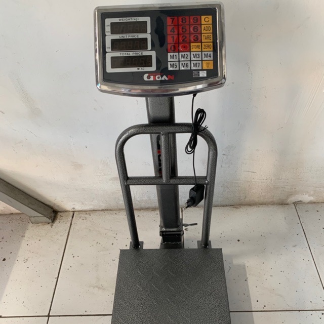 NOTE: Produk mengandung baterai, LUAR JAWA di larang pakai Wahana. Pengiriman Luar jawa hanya via darat/Laut. Timbangan duduk digital 150kg, dilengkapi dengan 2 layar , cocok untuk timbangan dagang, memudahkan penjual dan pembeli dlm melihat hasil penimbangan.- Berat Maksimal : 300 kg- Berat minimal : 0.01 Kg- Maksimal Input harga : 5 Digit (maksimal Rp. 99.999)- Maksimal Jumlah harga :6 Digit (Maksimal 999.999)- Voltage : 220 V- Rating Power : 10 VA- Presisi : 1/3000 F.S- Dengan Baterai yang bisa di isi ulang- Penyimpanan hingga 7 unit price#timbangandi