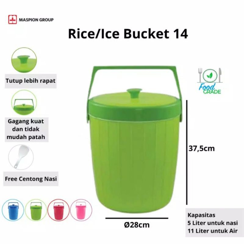 Termos Nasi / EsMerk : MaspionVolume : 14 Liter air ( 4 liter nasi )Dimensi : 28 x 37.5 cmWarna : Biru, hijau, Merah, Pinksilahkan di order Bunda/ KakaTerimak
