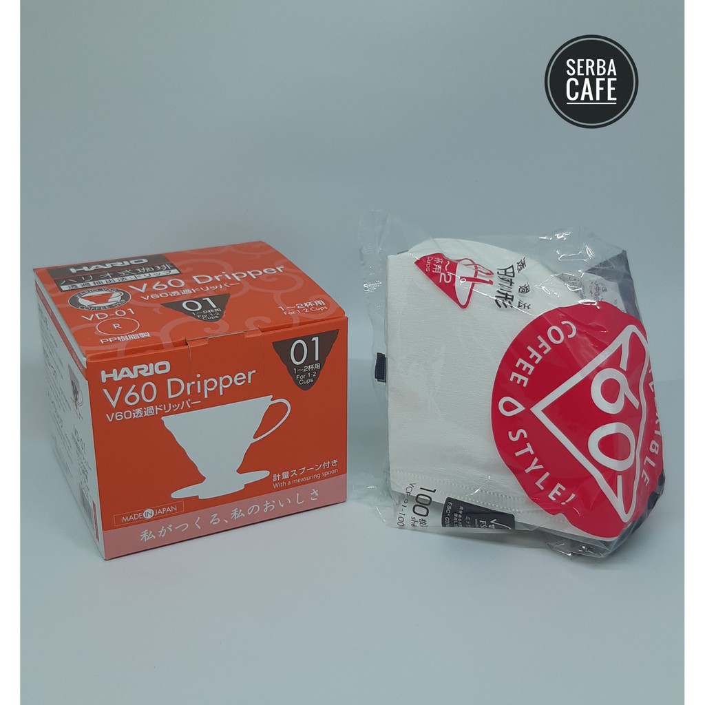 PERHATIAN!!! DALAM RANGKA ULANG TAHUN KE 15, HARIO MENGELUARKAN PRODUK EDISI SPESIAL UNTUK PAPER FILTER INI DIBERIKAN EXTRA 10 PCS SEHINGGA MENJADI 110 PCS DENGAN HARGA YANG SAMA. NAMUN APABILA STOK HABIS AKAN LANGSUNG DIBERIKAN YANG EDISI BIASA ISI 100. SIAPA CEPAT DIA DAPAT !!!Silahkan pilih warna dan ukuran V60 dripper yang ingin dibeli di bagian variasi. Berikut adalah variasi paket v60+ paper filter:1. VD-01W (V60 ukuran 01 warna Putih) + VCF-01-100W (Paper Filter ukuran 01 isi 100)2. VD-01R (V60 ukuran 01 warna Merah) + VCF-01-100W (Paper Filter ukuran 01 isi 100)3. VD-01T (V60 ukuran 01 warna Transparan) + VCF-01-100W (Paper Filter ukuran 01 isi 100)Semua barang ORIGIN