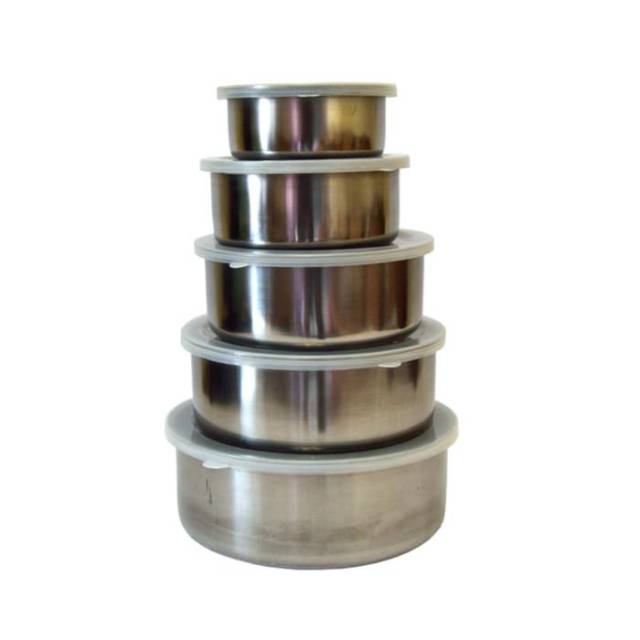 Rantang stainlis steel 1set isi 5 Ukuran (18,16,14,12,10)Dilengkapi tutup pla