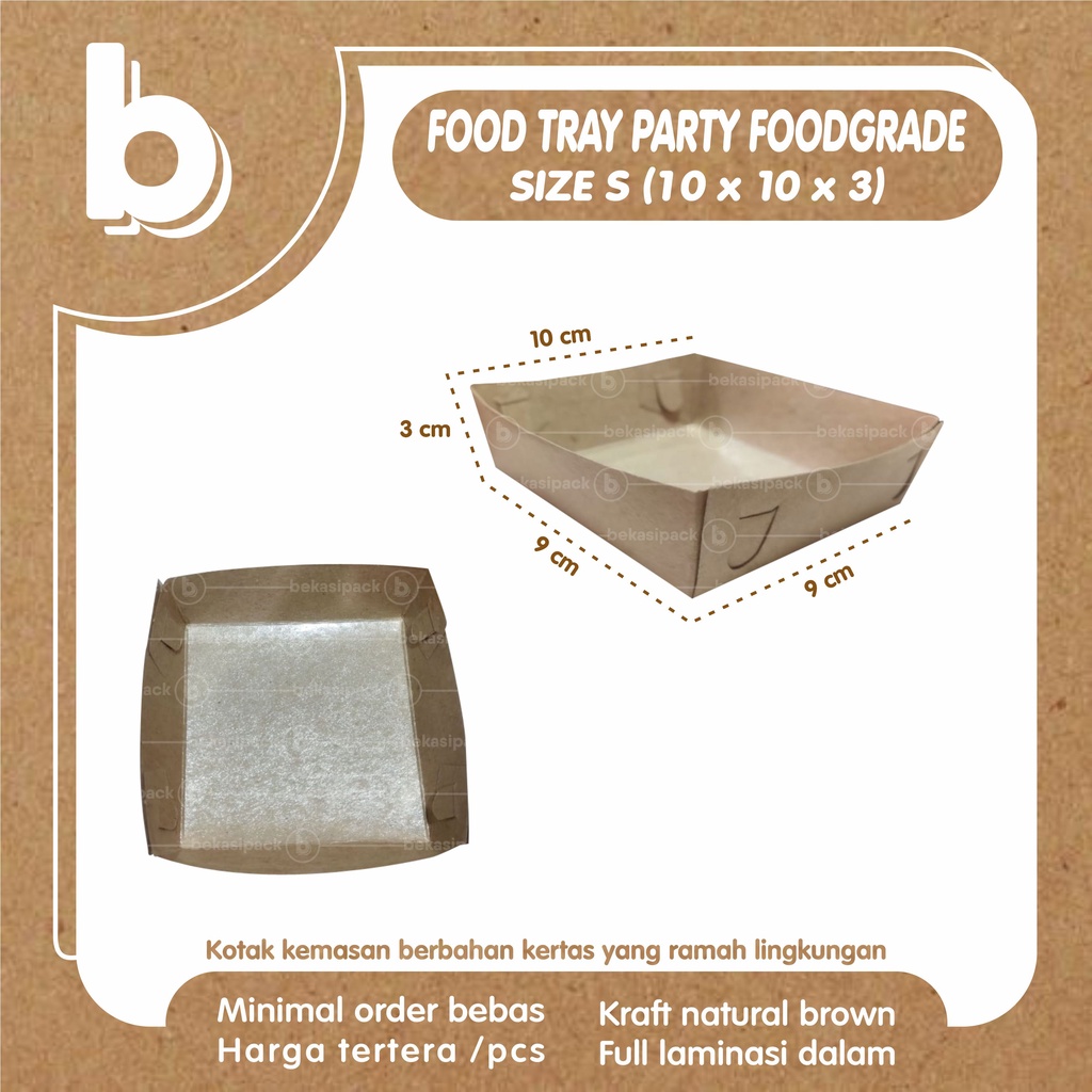 Food Tray Party Foodgrade S I FTPFS002071MINIMAL ORDER BEBAS = 1 PCS TETAP KAMI KIRIM Harga tertera/pcsSize 10 x 10 x 3 cmMaterial Kraft natural brown Full laminasi dalam (tahan rembes dan minyak)Full laminasi dalam (tahan rembes dan minyak)Full laminasi dalam (tahan rembes dan minyak)Model lipat lem/rapi siap pakai tanpa perlu rakit kembaliPacking extra aman menyesuaikan jumlah pesanan1 kg = 125 pcs-------------------------------------------------------------------------------------------Silahkan chat/inbox jika ada pertanyaan slow respon karena mendahulukan pesananPemesanan 1.000 pcs ke atas disarankan menggunakan ekspedisi JNE Trucking untuk ongkir lebih murah.--------------------------------------------------------------------------------------------------------------------------------------------------------------------------------------Yuk kurangi sampah plastik dengan menggunakan kemasan ramah lingkunganTerima kasih telah menggunakan produk kemasan eco dari bekasip