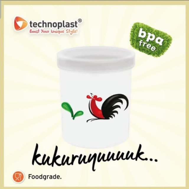 TECHNOPLAST KUKURUYUK STOPLES / TOPLES MAKANAN / SNACK adalah toples makanan cantik yang cocok untuk diletakkan di meja ruang tamu / ruang makan / ruang keluarga. Tempatkan makanan favorit yang disuka dengan stoples Kukuruyuk. Desainnya yang clear di bagian body-nya memudahkan kita untuk melihat isi makanan dari stoples, sehingga lebih mudah untuk kita mengambil snack favorit kita lho.Spesifikasi :Material : Plastik PPSize : 115 x 115 x 151 mmIsi : 1 pcsDesain : Kuku