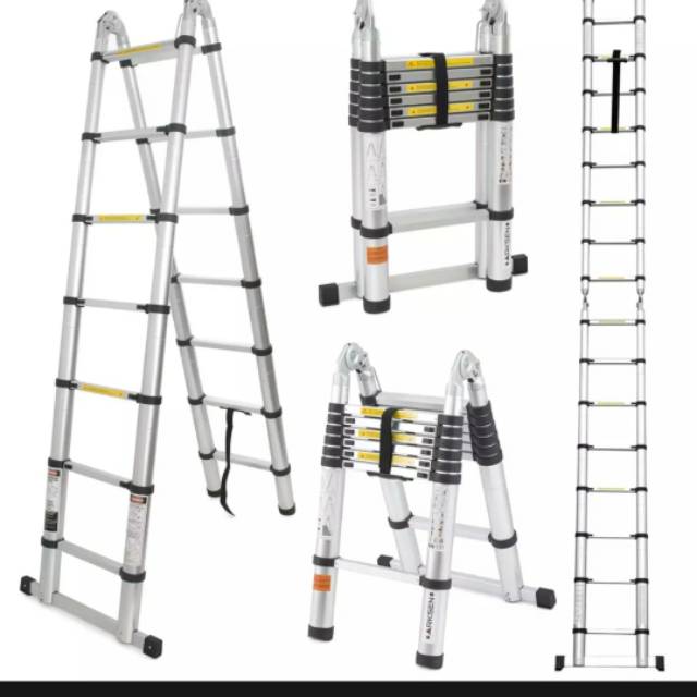 "FREE ONGKIR JABODETABEKA"BARANG READY STOK, SILAHKAN LANGSUNG ORDER!!!UNTUK PEMBELIAN QUANTITY DAN COD, HARAP PM!!!-HARGA PALING MURAH KARENA DIIMPOR LANGSUNG DARI PRODUSEN DAN DIJUAL LANGSUNG KE KONSUMEN SECARA ONLINE. SILAHKAN PERIKSA HARGA DAHULU SEBELUM MEMBELI-Tangga Teleskopik Merk: DENKO(TANGGA TELESKOPIK TERMURAH DAN BERKUALITAS)Tangga Merupakan Investasi Jangka Panjang, Lebih Baik Membeli Mahal Sedikit, tapi Kualitas Beda Jauh dengan Merk Lain, dan INGAT TANGGA MENYANGKUT KESELAMATAN ORANG YANG MENGGUNAKANNYA!!!Tangga Teleskopik Lipat / Double DENKO TLB 7 (2.2+2.2 = 4.4 Meter)Tangga dengan maksimal tinggi dalam bentuk lipat atau A: 2.2 MeterDan jika diluruskan dengan tinggi maksimal: 4.4 MeterTANGGA TELESKOPIK TERMURAH DAN BERKUALITAS!!!Tangga lipat telescopic lurus adalah tangga portable telescopic yang paling ringan dan praktis di kelasnya. Hanya dalam hitungan detik, tangga dapat ditinggikan; dan sebaliknya dalam hitungan detik pula, tangga dapat dilipat/dipendekkan. Praktis dalam pemakaian, mudah ditenteng sebelah tangan, dan dapat disimpan di bagasi mobil yang paling kecil dan sempit sekalipun.Hati-hati dengan kwalitas tangga karena menyangkut keselamatan. Produk kami utamanya dibuat untuk pasar Masyakarat Eropa. Karena itu telah bersertifikasi European Union Safety Standard, EN-131 dengan beban maximum 150 kg- lebih dari cukup untuk anda semua. Jangan keliru dengan tangga teleskopik kelas di bawahnya.Kelebihan Produk:-Bahan Alumunium Tebal-100% Stainless Steel-Build Quality Bagus-Anti KaratNote: Berat Tangga diatas adalah berdasarkan Volumetrik (untuk pengiriman karena barang b