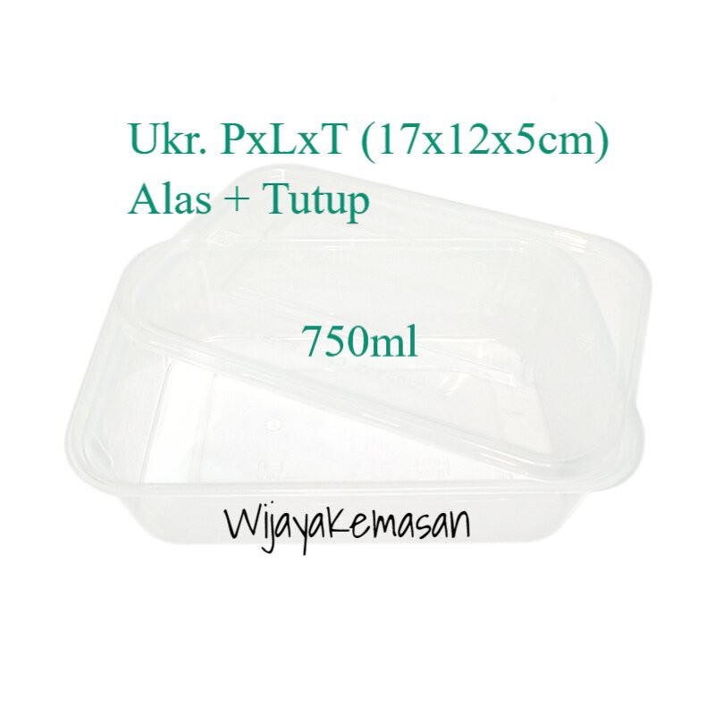 Tempat Makanan Plastik 750ml (Thinwall)- 1pack isi 25 set alas + tutup- memiliki kapasitas 750ml = 675gram- PxLxT : 17x12x5cm- ketebalan 0,5mm- bahan FoodG
