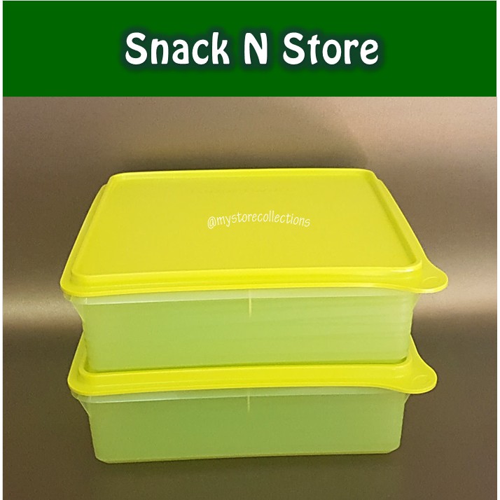 Snak Stor Hijau (1 Pcs) Ukuran:@ 2.9 L/ 25.4 x 24.5 x 7.9 cm Makan camilan memang nikmat, apalagi jika camilan tersebut adalah kue favorit Anda. Tentunya, agar kue tetap lezat dinikmati harus disimpan dalam wadah yang tidak hanya sekedar untuk menyimpan makanan melainkan juga bisa menjaga kualitasnya. Untuk memenuhi kebutuhan tersebut, Tupperware menjawabnya dengan Snak Stor Hijau, wadah penyimpanan makanan dengan tampilan yang cantik dan modern. Snak Stor Red memiliki fitur unggulan yang inovatif, diantaranya:1.Memiliki seal yang ketat udara, sehingga dapat menjaga cake dan kue basah Anda tetap terjaga kelezatannya.2.Stackable, sehingga Anda tak perlu khawatir wadah ini tumpah ketika ditumpuk.3.Tab yang besar, memudahkan Anda untuk membuka sealnya yang ketat.4.Tersedia dalam warna merah yang mewah dan menawan, sangat cocok untuk mempercantik meja tamu.5.Berbentuk persegi, memungkinkan untuk menyimpan lebih banyak kue.6.Memiliki motif yang cantik dan elegan, dengan warna merah yang menarik.7.Snak Stor Hijau tak hanya dapat Anda gunakan sebagai wadah kue basah atau cake saja, tetapi juga untuk snack kering.NB: MOHON TANYAKAN KETERSEDIAAN BARANG TERLEBIH DA