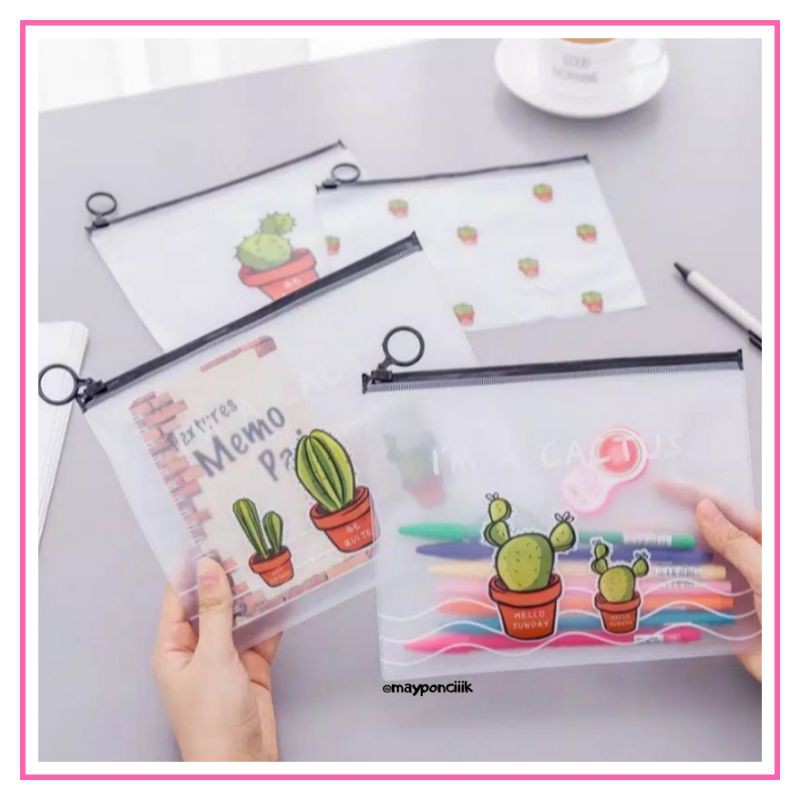 Korean Cactus PVC Transparan ukuran A5 ini bisa dijadikan sebagai tempat penyimpanan alat tulis dan kosmetik berukuran A5.Pouch ini memiliki motif yang menarik dan telah dilengkapi dengan resleting, sehingga barang yang disimpan didalamnya akan tetap rapi dan aman.Ukuran : 17 x 21 cmPilihan Motif :1. Satu Cactus2. Dua Cactus3. Tiga Cactus4. Banyak C
